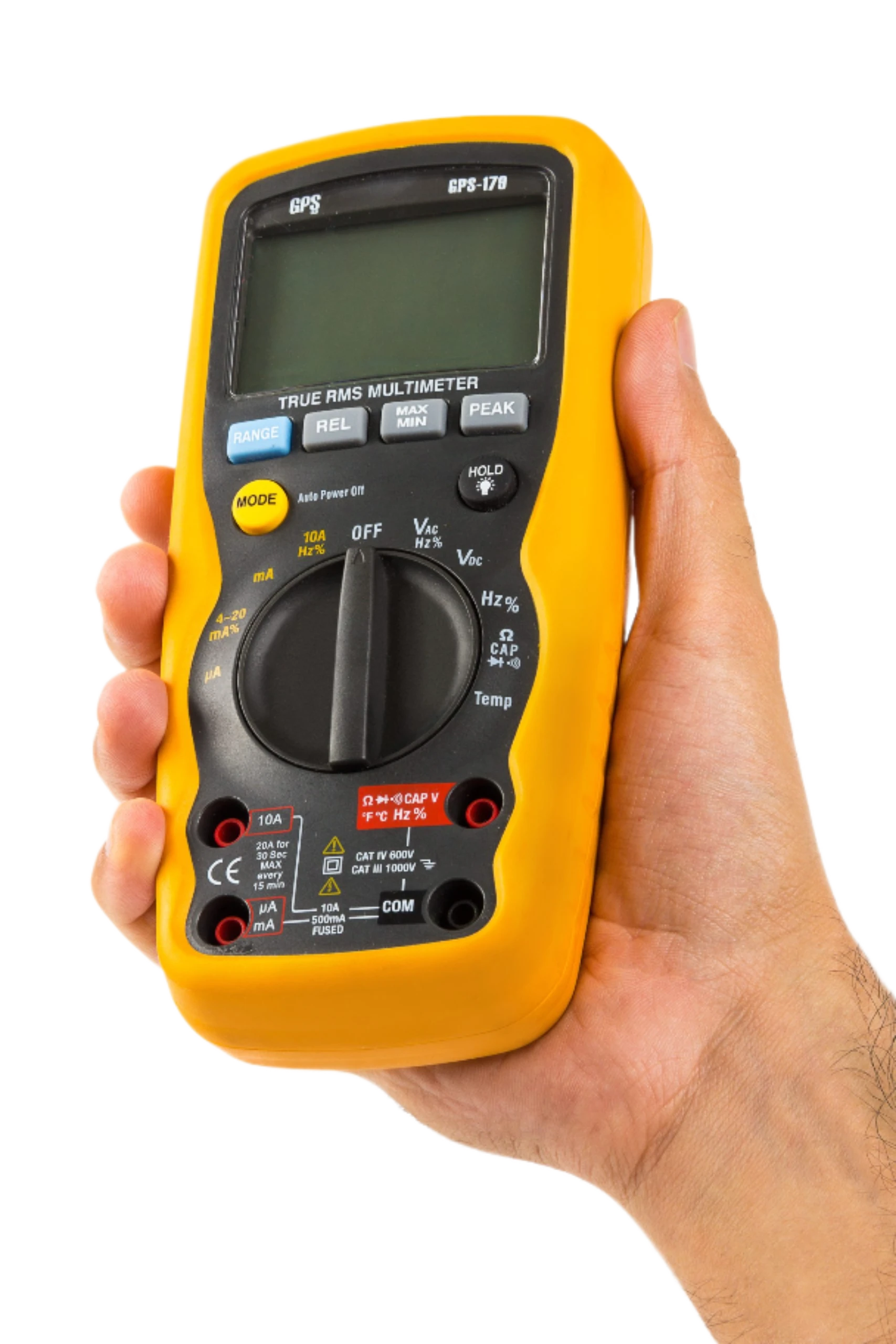 CAT IV 600 V / CAT III 1000 V safety rating. The GPS‑179 adds True‑RMS and